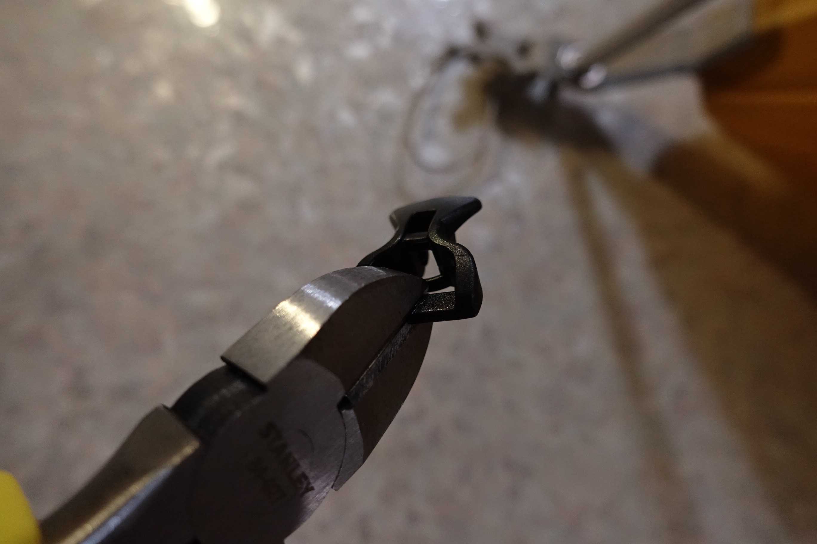 백패킹 카페 글을 참고해, 라인락의 중간 부분을 자른다. 글에는 중간 부분을 자르라 되어 있지만, 라인락을 장착한 사진에서 볼 수 있듯 라인락이 더 면적이 좁기에 중간 부분을 자르면 넣기 쉽지 않다. 오히려 끝쪽에 가깝게 잘라야 넣기 쉽다. 반대로 벤틸레이션 등 면적이 라인락보다 적은 부분을 라인락에 달 때엔 중앙에 잘라야 이탈 등의 문제가 없다.