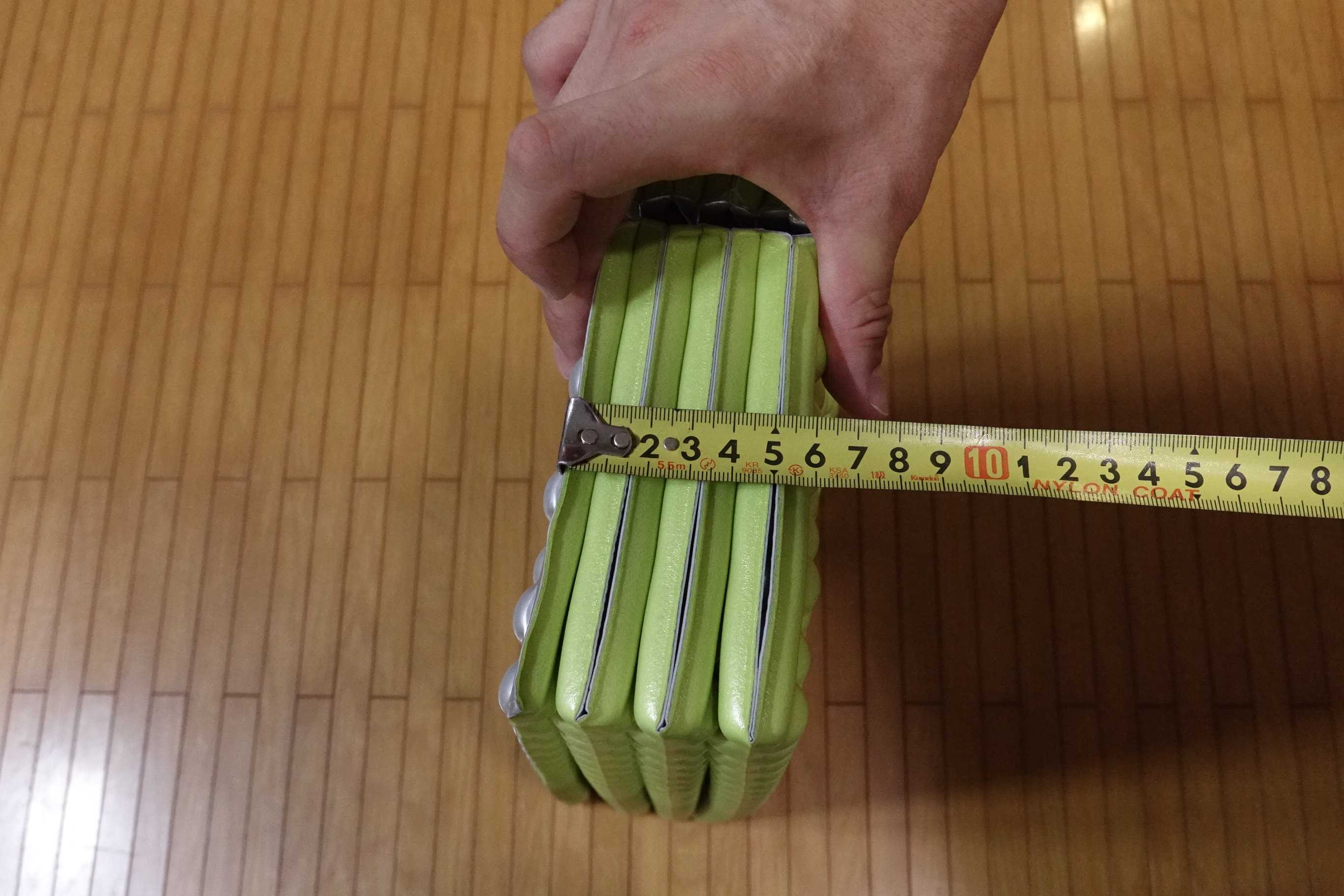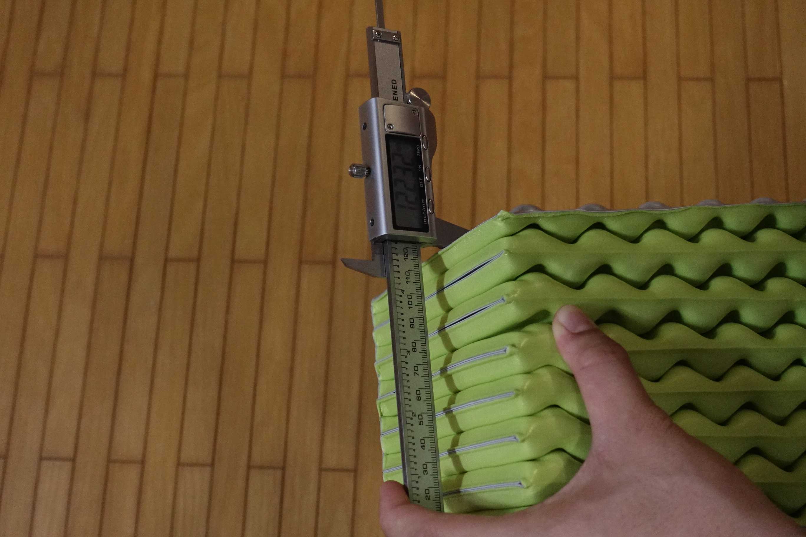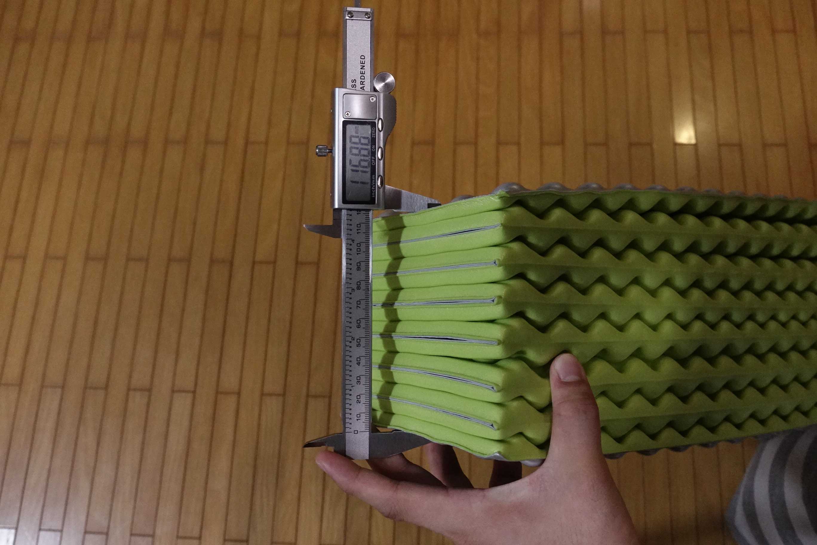 매트의 패킹시 두께는 어떻게 측정해야 할지 모르겠다. 골로 측정했을 때는 왼쪽, 116.88mm로 측정되고, 튀어나온 부분으로 측정했을 때는 오른쪽, 122.32mm로 측정된다.