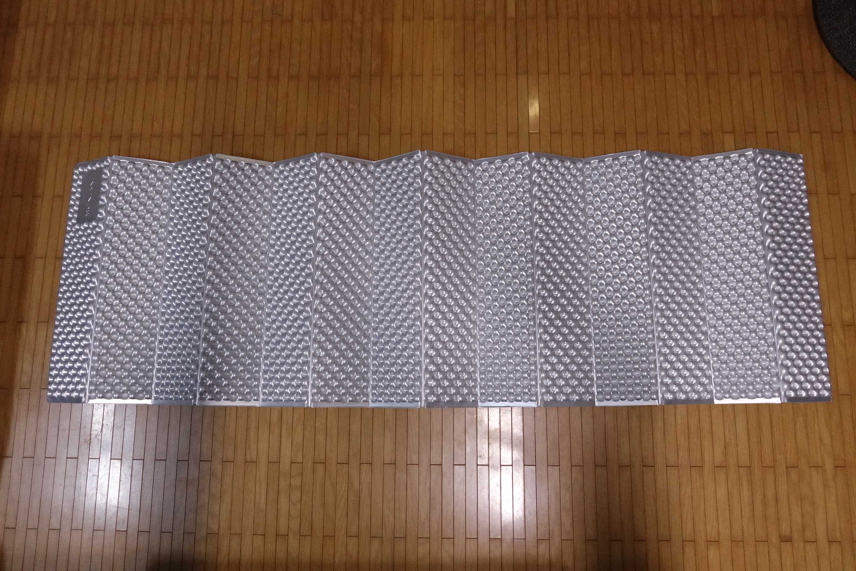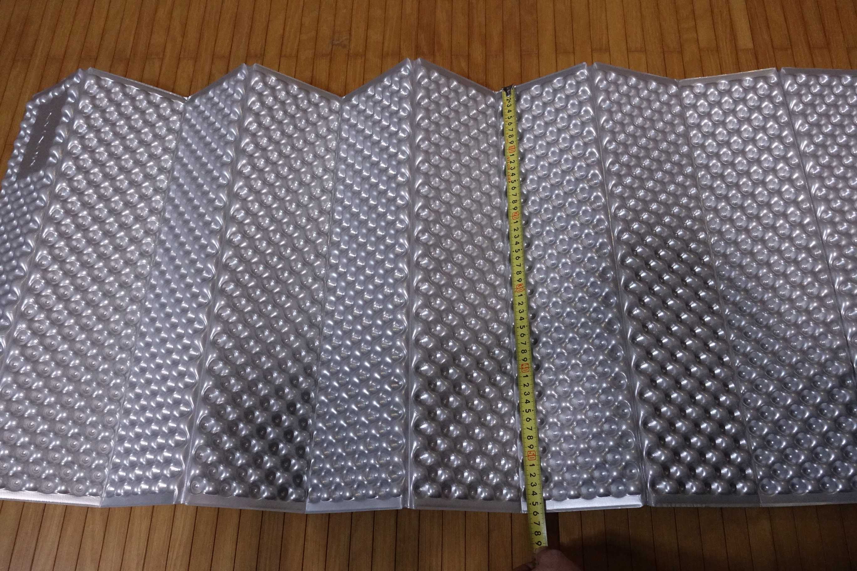 앞면과 뒷면. 스위치백은 은박을 바닥면에 두고 쓰지만 여타 다른 매트는 은박을 윗면에 두고 쓴다. 이 상품도 별다른 설명이 없으니 그렇지 않을까 싶다. 가로길이는 파우치에 써진 대로 56cm, 세로 길이는 183cm이다.